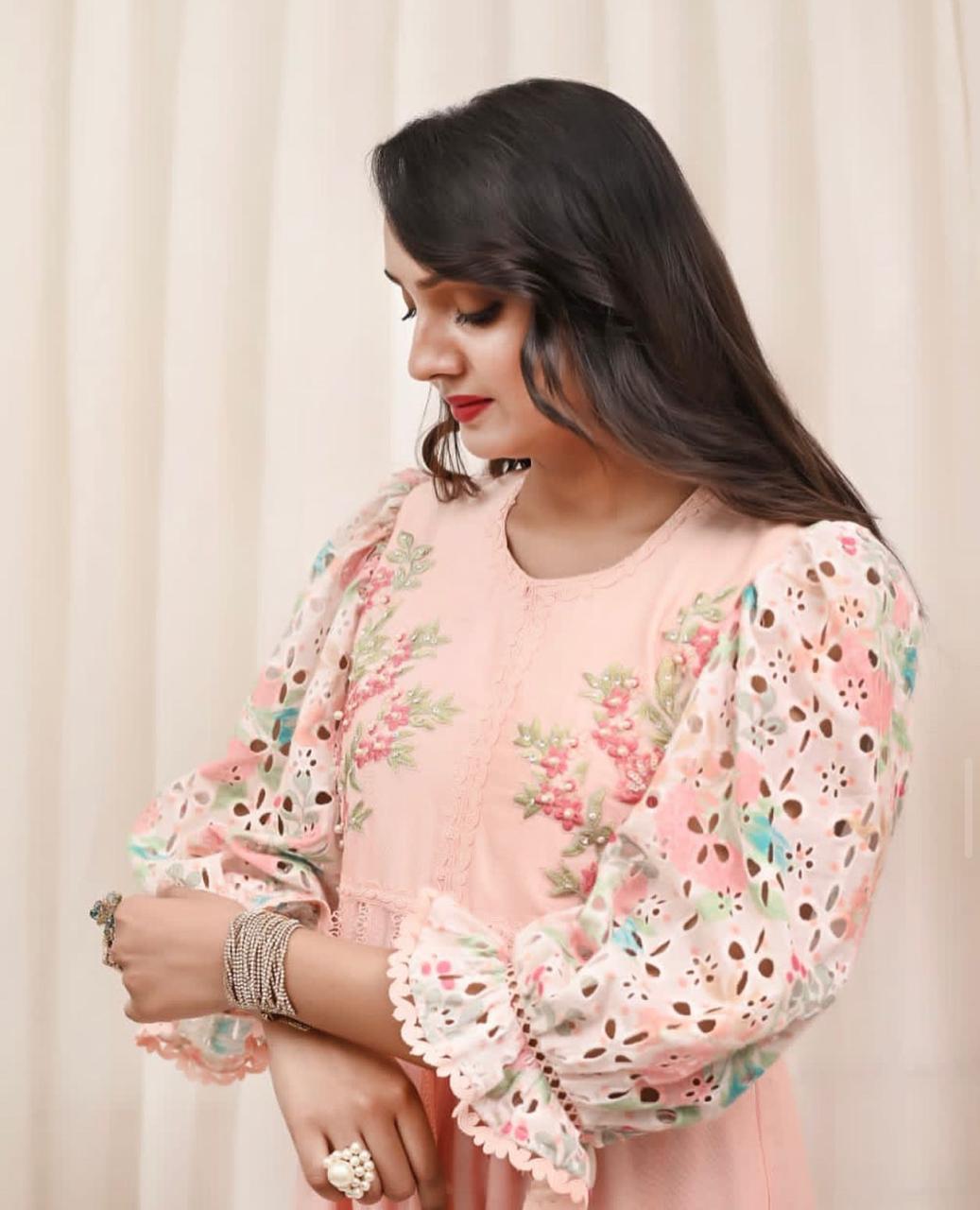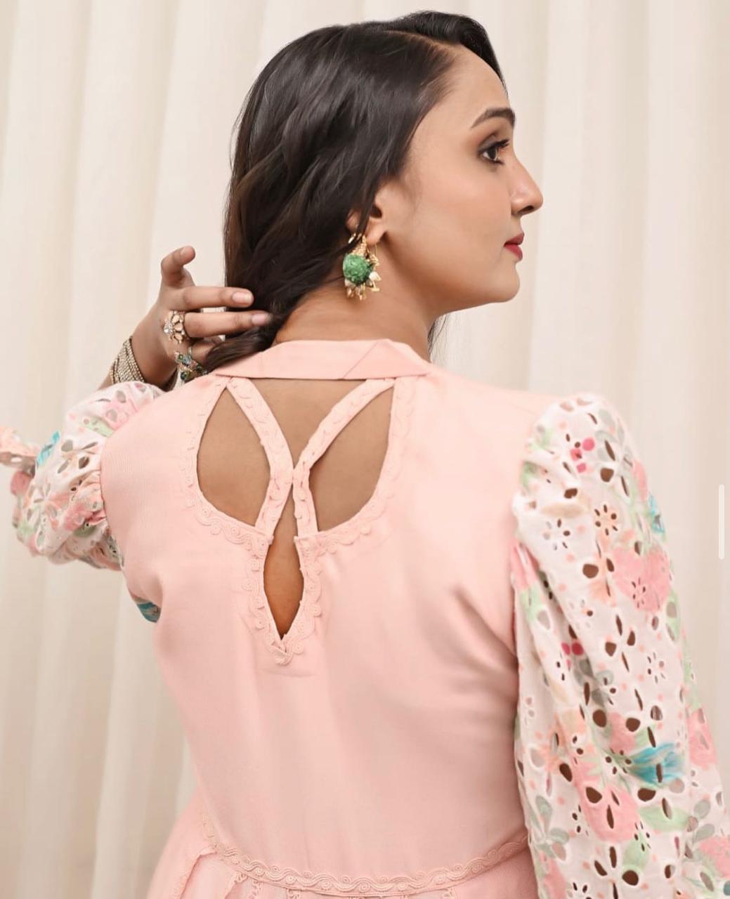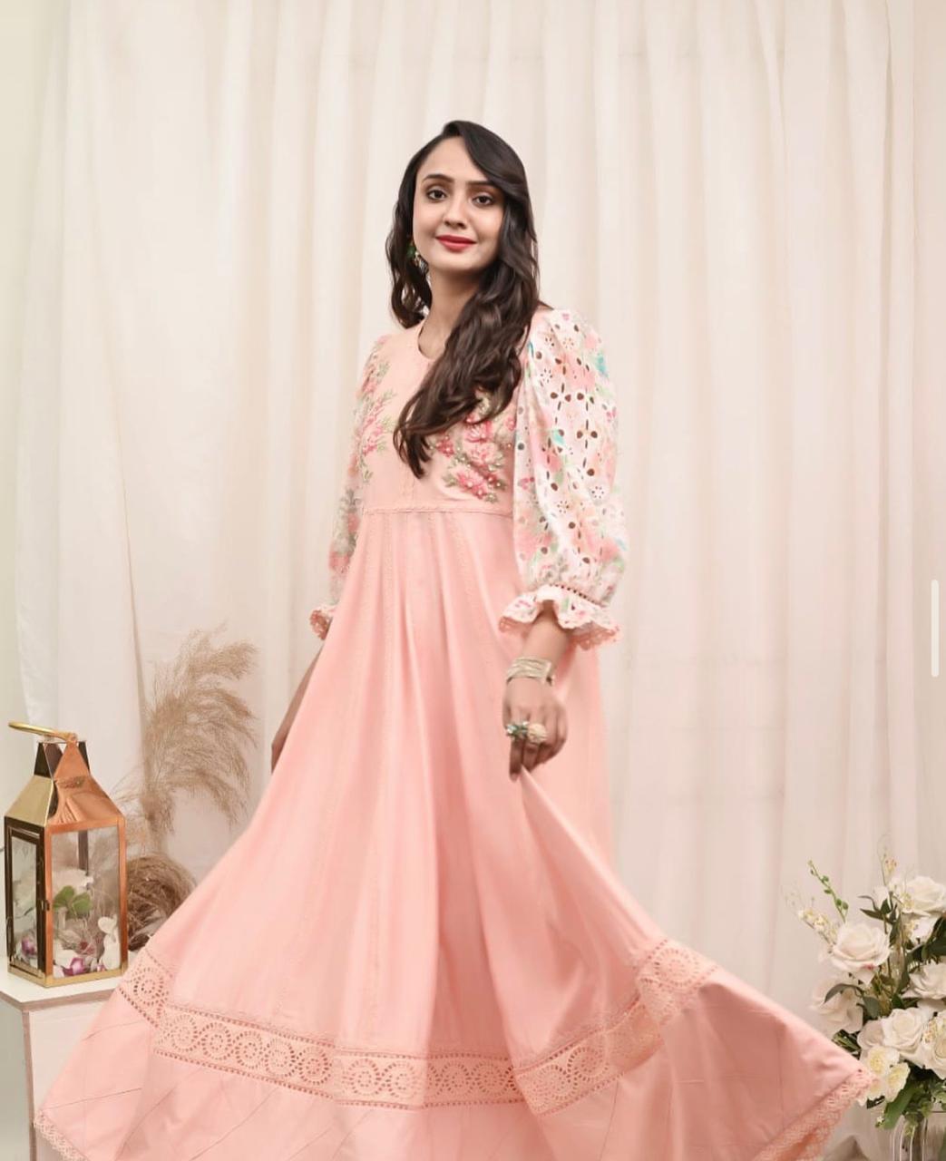 Wear the Elegancy with the Blossom Fairy Tale Frock, where delicate handwork and crochet laces intertwine to create a stunning pattern. The intricate pin tucks on the border add an extra touch of elegance, making this dress a dream come true.