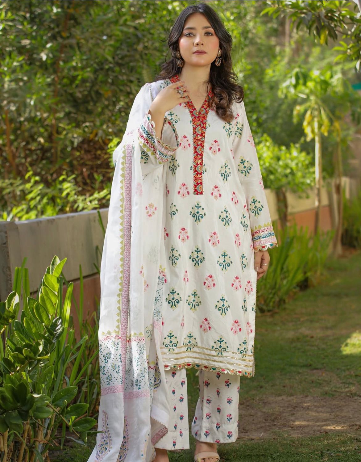 Gul Bano Our most trendy and traditional Gul Bano collection is now available online! - Traditional block print design - Elegant gota work - Straight cut silhouette