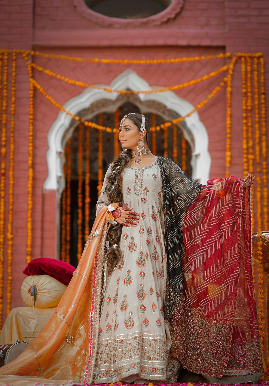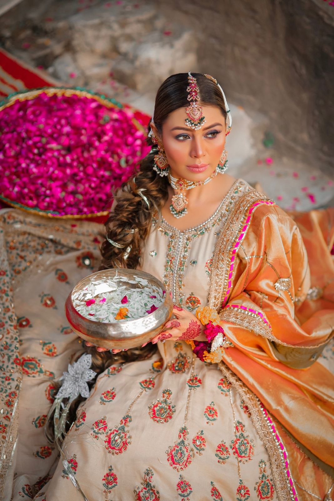 Step into timeless elegance with our Rimjhim ensemble, crafted from premium Korean raw silk that radiates a soft, graceful sheen. This luxurious outfit is beautifully adorned with delicate handwork, adding a touch of artisanal charm and intricate detailing. The subtle texture of the raw silk complements the fine craftsmanship, making it perfect for festive occasions, formal gatherings, or evening celebrations. With its rich fabric and refined embellishments, Rimjhim blends classic sophistication with modern finesse – a true statement of style and tradition